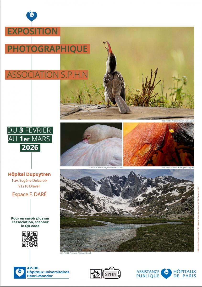 Du 11 février au 11 mars 2025, la Société de photographie d'histoire naturelle (SPHN) présente sa dernière exposition, celle qui marque son 70e anniversaire, à l'hôpital Dupuytren, dans l'Essonne.